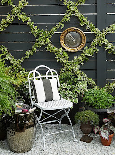 And there you have it! An espalier design that’s stylish and easy to maintain (and to pull together at home in no time!). I carved out a little corner for myself next to my trellis with one of my white-painted iron chairs, a garden stool, and a vintage porthole mirror for a tad of cozy and shine. With a little care and (hopefully) lots of sunny summer days, I know this wall will only get more beautiful.See more here
